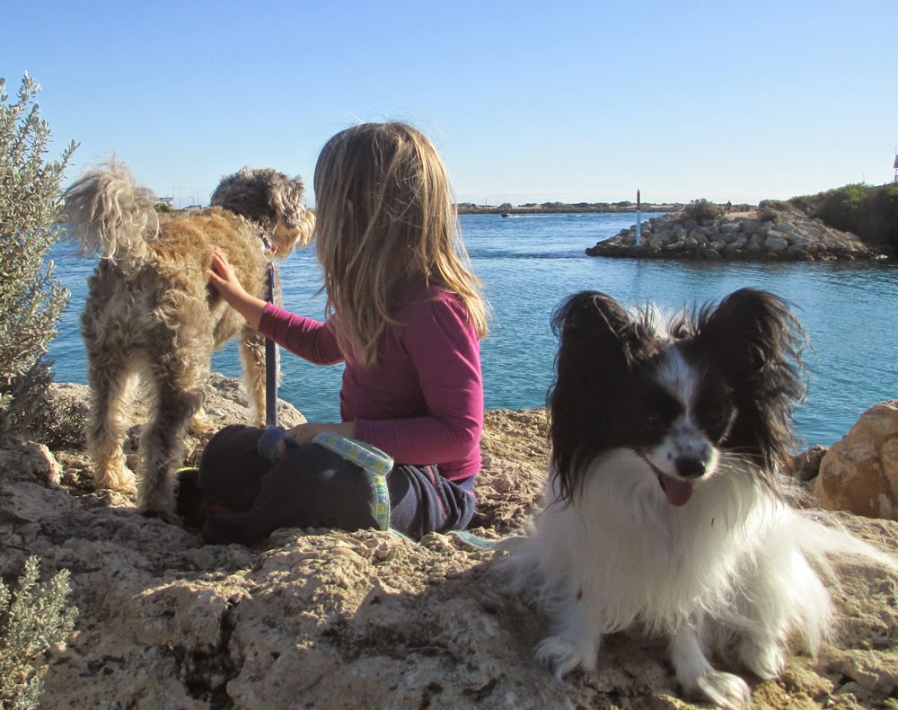 Sienna with Mabel and Amber down The Cut on a lovely sunny day watching the dolphins and the fishermen