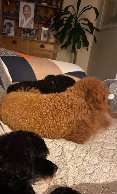 Alfie above and Pepper below on their walk before it gets too hot